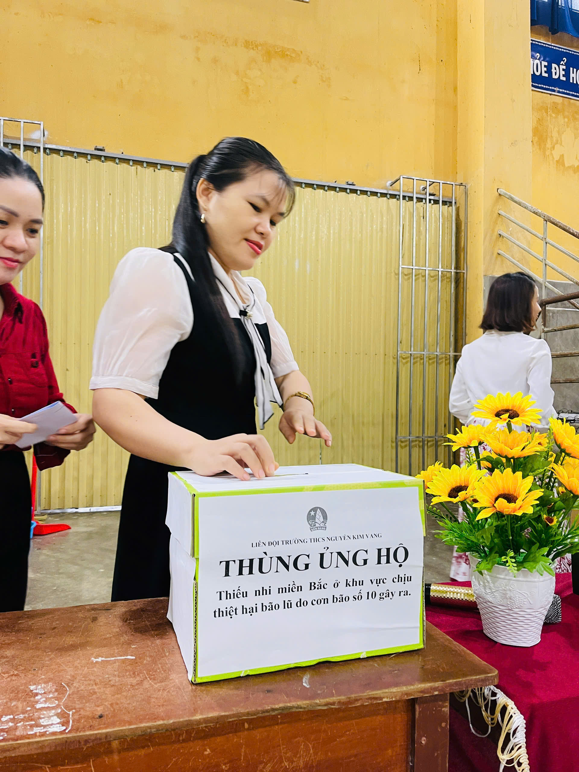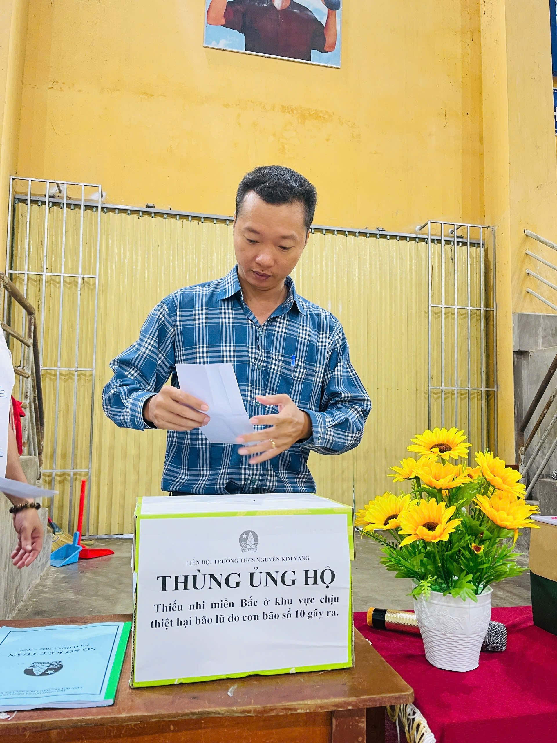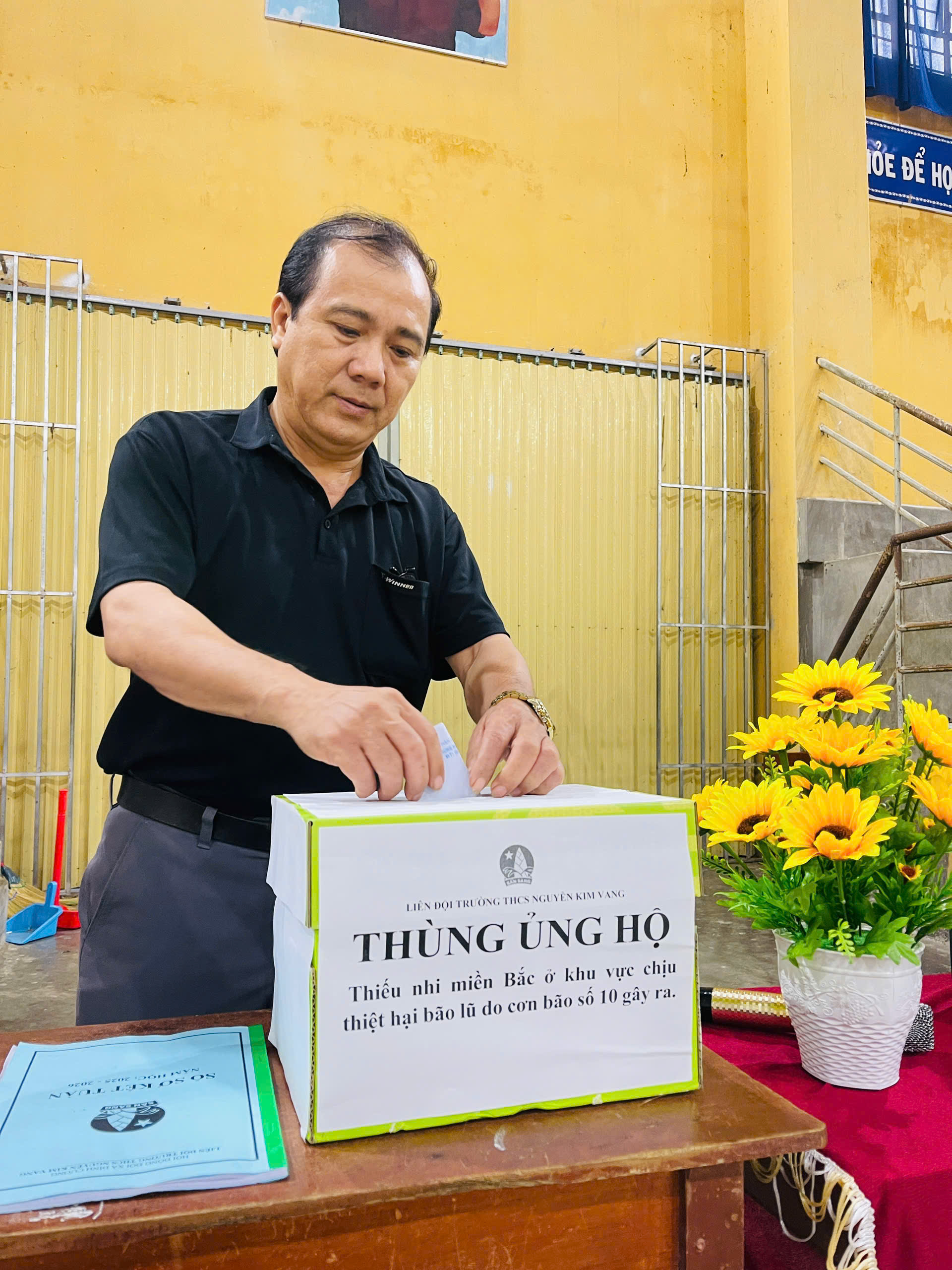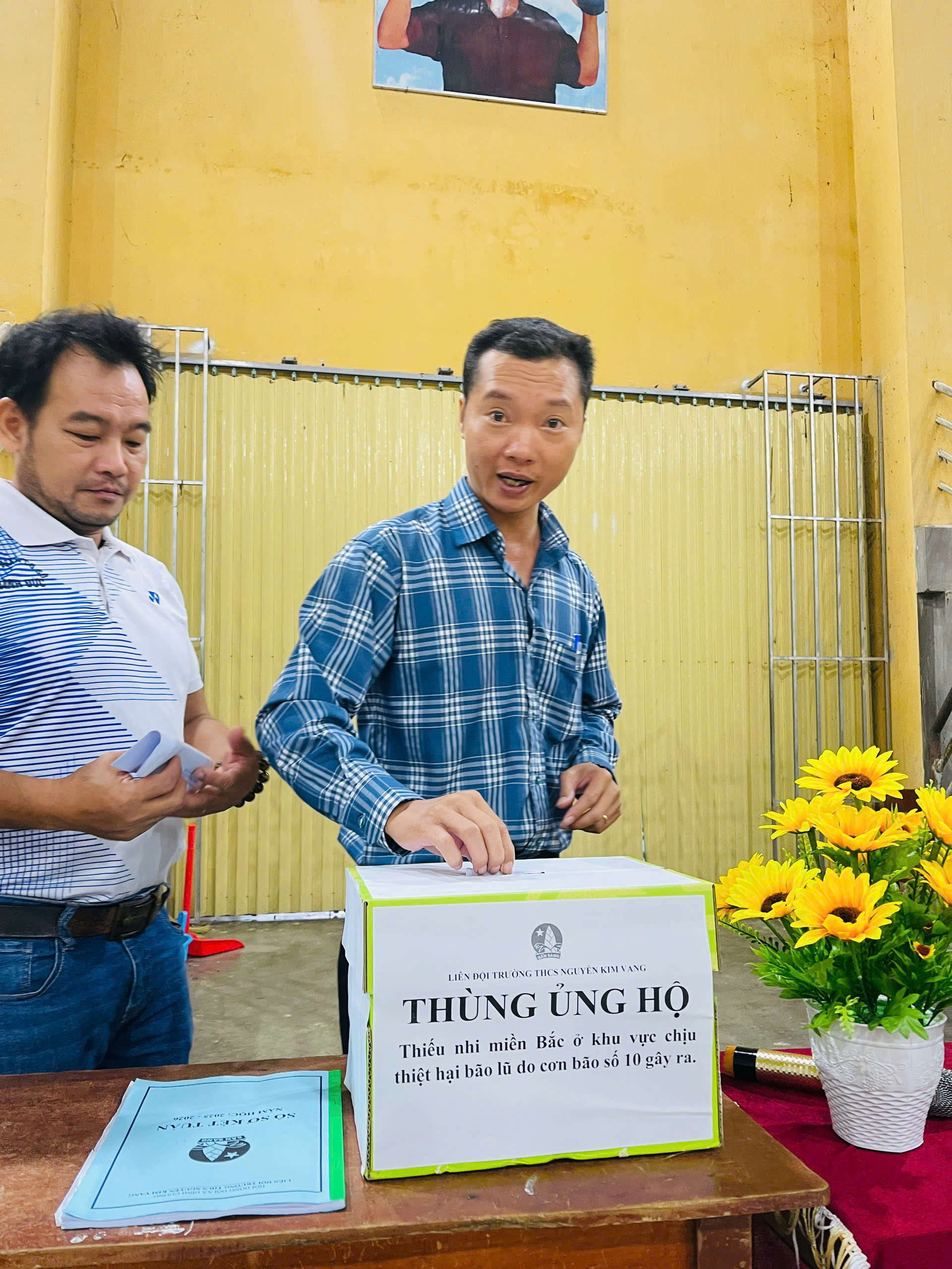 Thực hiện cuộc vận động của UBMTTQVN xã Đình Cương và thư ngỏ của Đoàn TNCS Hồ Chí Minh xã Đình Cương về việc ủng hộ đồng bào và học sinh các tỉnh phía Bắc chịu thiệt hại nặng nề do bão, lũ gây ra. Với tinh thần tương thân tương ái, lá lành đùm lá rách, sáng hôm nay ngày 20/10/2025 tại Nhà thi đấu Đa năng trường THCS Nguyễn Kim Vang nhà trường tổ chức quyên góp và ủng hộ trong toàn thể CBGVNV và các em học sinh. Tổng số tiền các em học sinh ủng hộ là 3.607.000đ ; CBGVNV ủng hộ là 5.800.000đ, tổng cộng CBGVNV và các em học sinh ủng hộ là: 9.407.000đ. Tất cả số tiền này sẽ chuyển đến Đoàn TNCS Hồ Chí Minh và UBMTTQVN xã Đình Cương gửi đến đồng bào và các em học sinh các tỉnh phía Bắc. Thầy giáo Đỗ Đình Thanh – Bí thư chi bộ, hiệu trưởng nhà trường xin ghi nhận tấm lòng tương thân tương ái của toàn thể các em học sinh và CBGVNV nhà trường và mong đồng bào, các em học sinh các tỉnh phía Bắc sớm vượt qua khó khăn, ổn định cuộc sống.