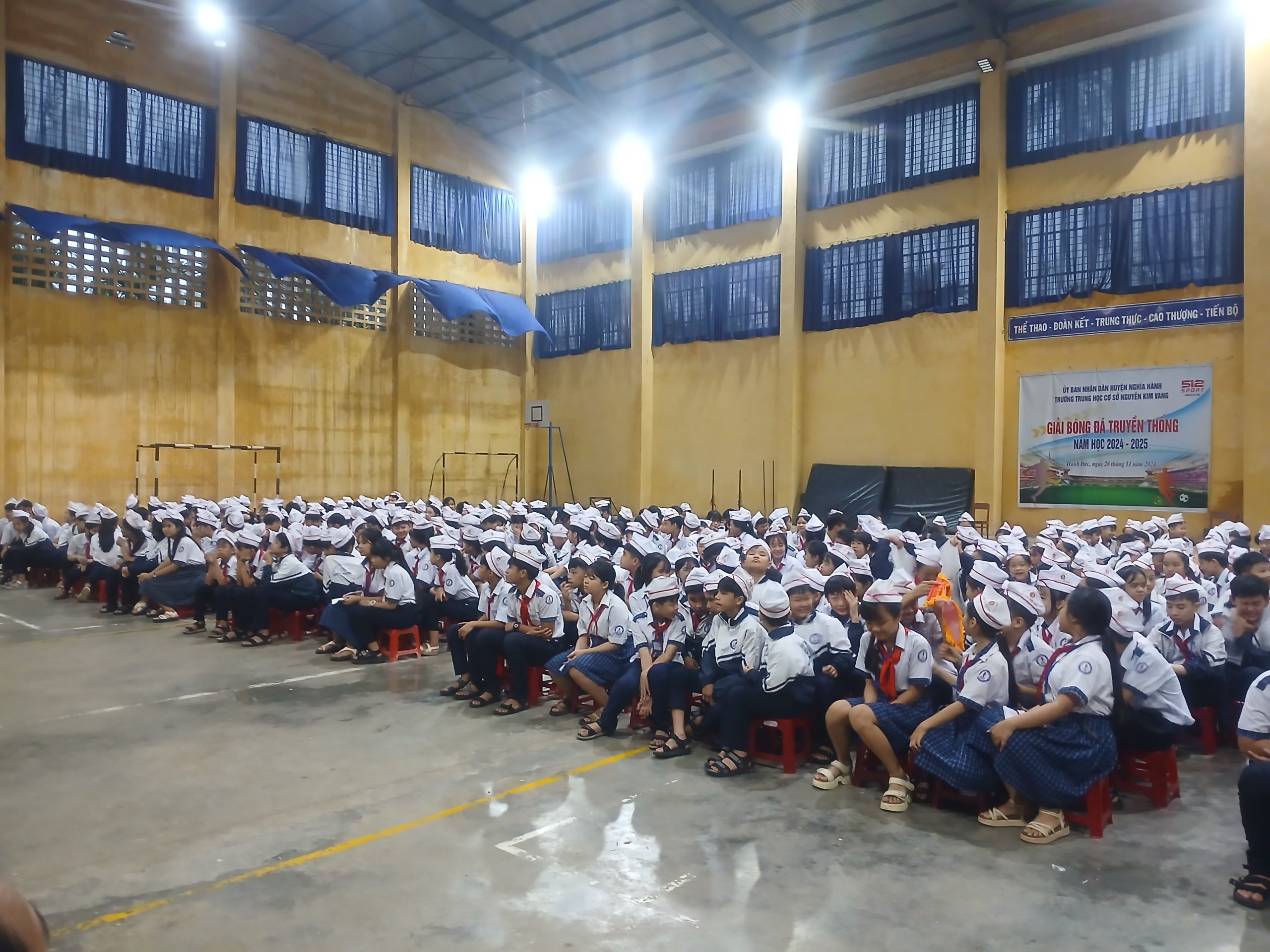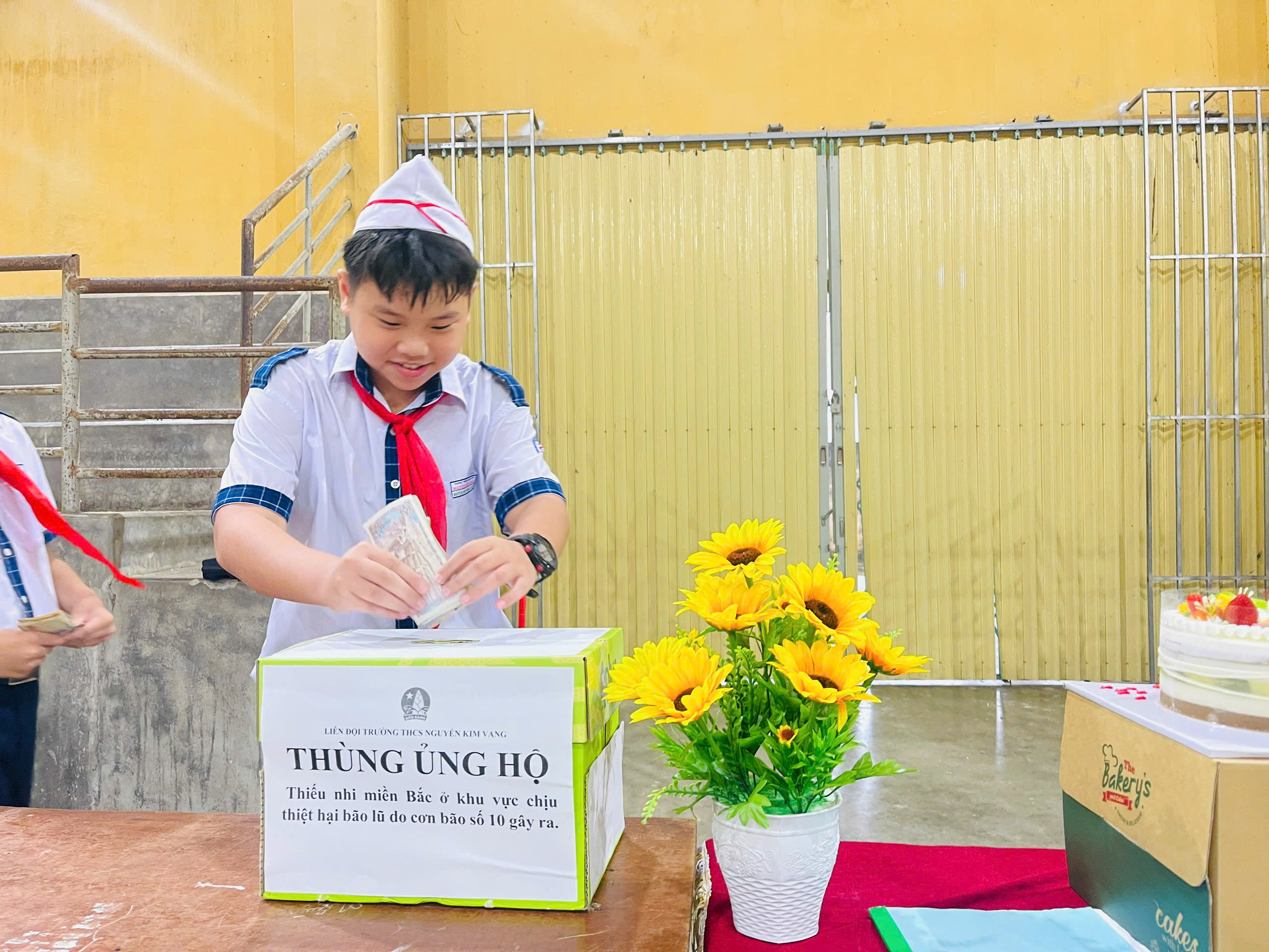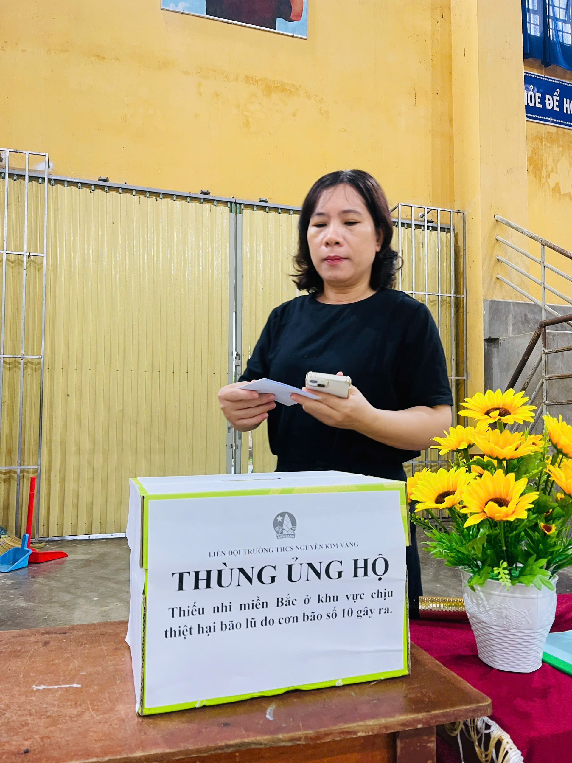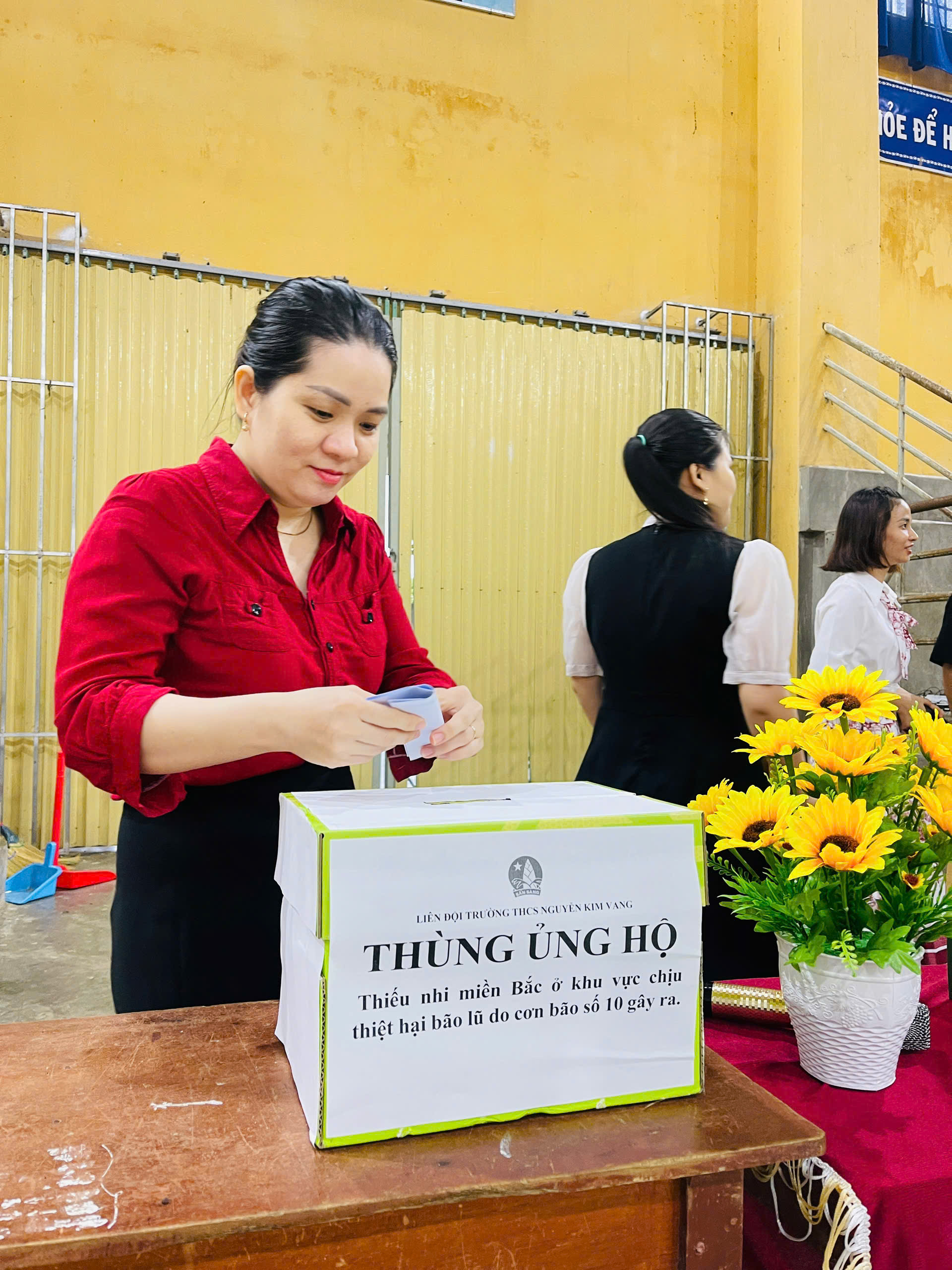 Thực hiện cuộc vận động của UBMTTQVN xã Đình Cương và thư ngỏ của Đoàn TNCS Hồ Chí Minh xã Đình Cương về việc ủng hộ đồng bào và học sinh các tỉnh phía Bắc chịu thiệt hại nặng nề do bão, lũ gây ra. Với tinh thần tương thân tương ái, lá lành đùm lá rách, sáng hôm nay ngày 20/10/2025 tại Nhà thi đấu Đa năng trường THCS Nguyễn Kim Vang nhà trường tổ chức quyên góp và ủng hộ trong toàn thể CBGVNV và các em học sinh. Tổng số tiền các em học sinh ủng hộ là 3.607.000đ ; CBGVNV ủng hộ là 5.800.000đ, tổng cộng CBGVNV và các em học sinh ủng hộ là: 9.407.000đ. Tất cả số tiền này sẽ chuyển đến Đoàn TNCS Hồ Chí Minh và UBMTTQVN xã Đình Cương gửi đến đồng bào và các em học sinh các tỉnh phía Bắc. Thầy giáo Đỗ Đình Thanh – Bí thư chi bộ, hiệu trưởng nhà trường xin ghi nhận tấm lòng tương thân tương ái của toàn thể các em học sinh và CBGVNV nhà trường và mong đồng bào, các em học sinh các tỉnh phía Bắc sớm vượt qua khó khăn, ổn định cuộc sống.
